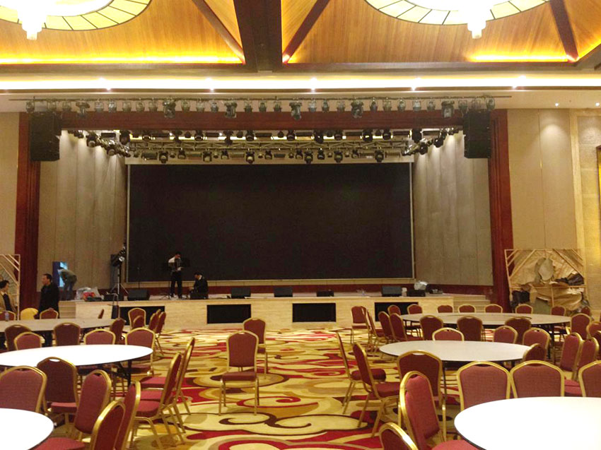 我司承接陽西酒店宴會廳音響工程,工程師為該工程提供具體的解決方案:配置燈光系統(tǒng),投影顯示系統(tǒng),高清工程投影機(jī),250英寸灰玻纖投影幕布,專業(yè)音箱,專業(yè)功放等音響設(shè)備。