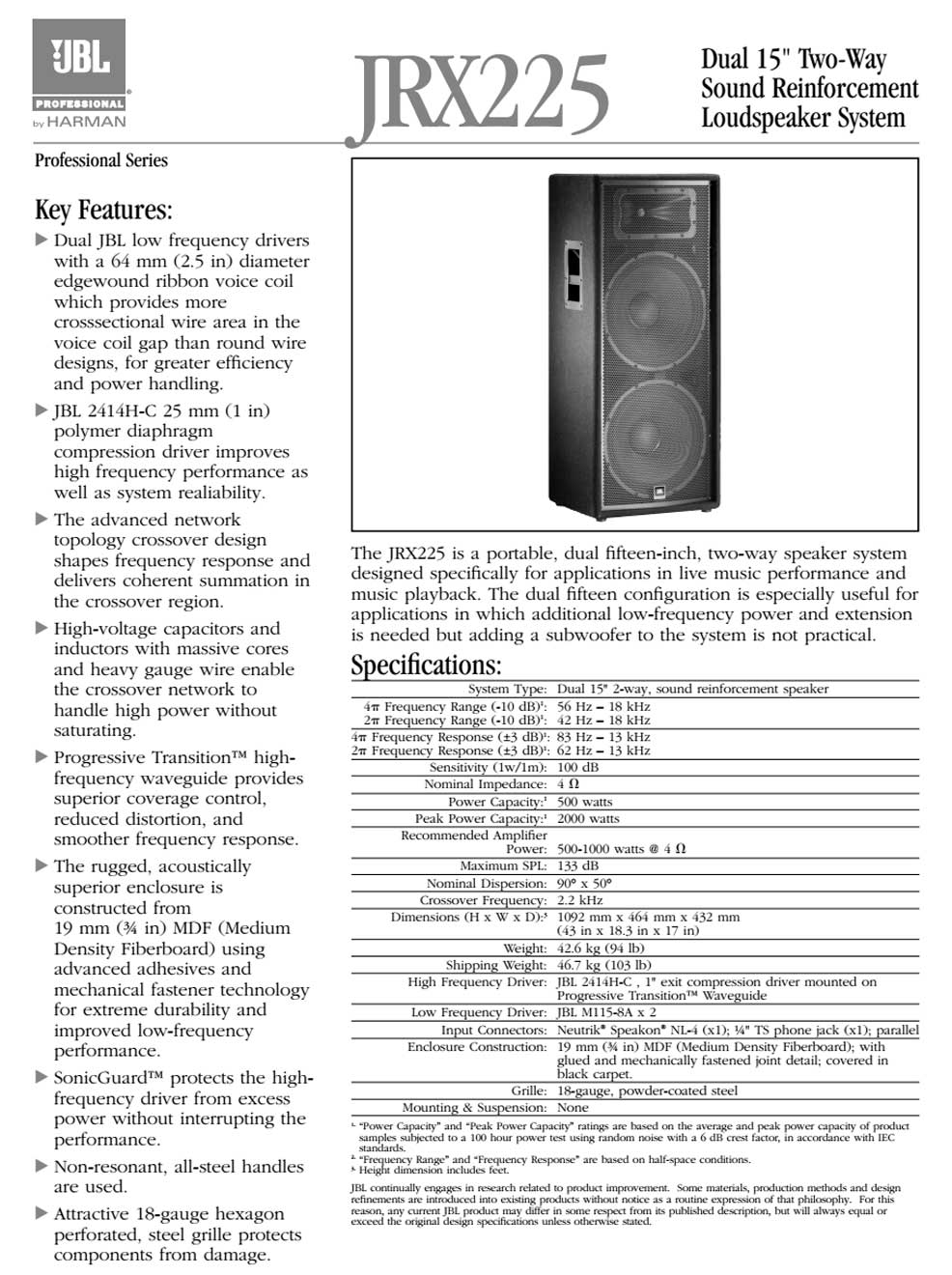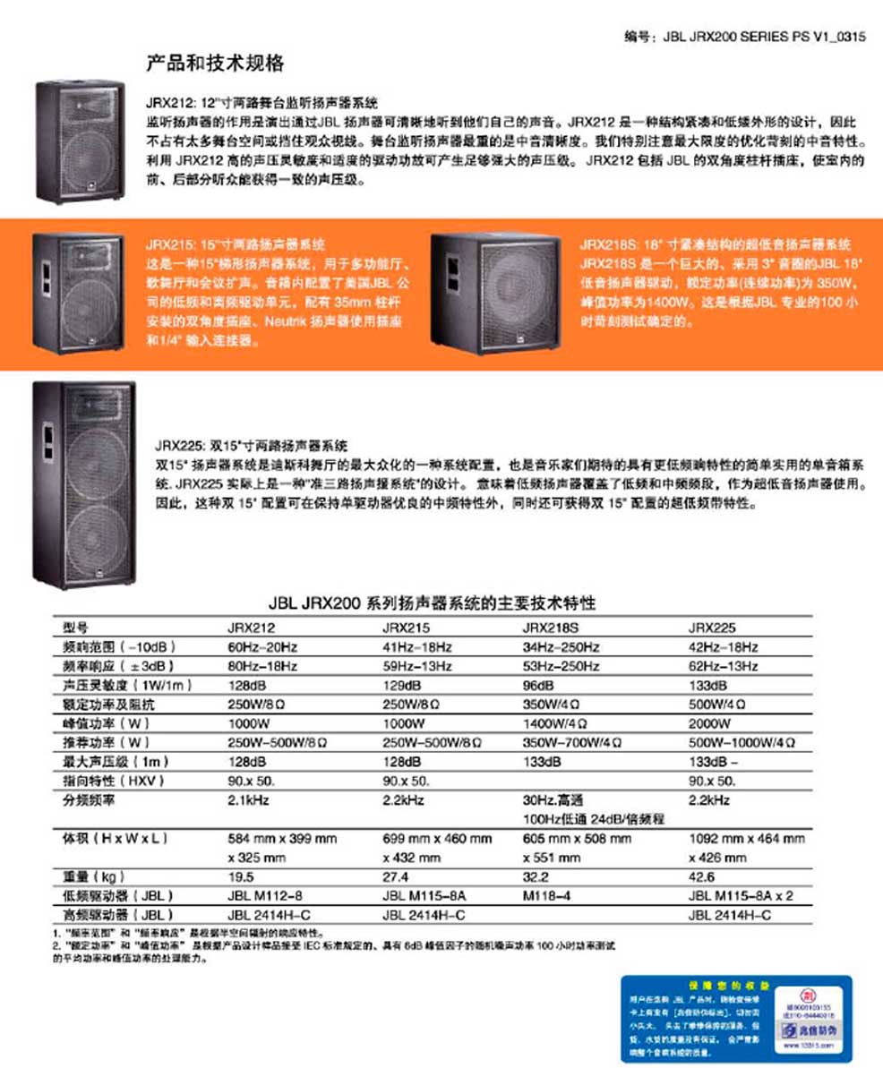 JRX200 使用的低音單元和壓縮驅(qū)動(dòng)器金部由美國(guó)加洲JBL專(zhuān)業(yè)公司制造。