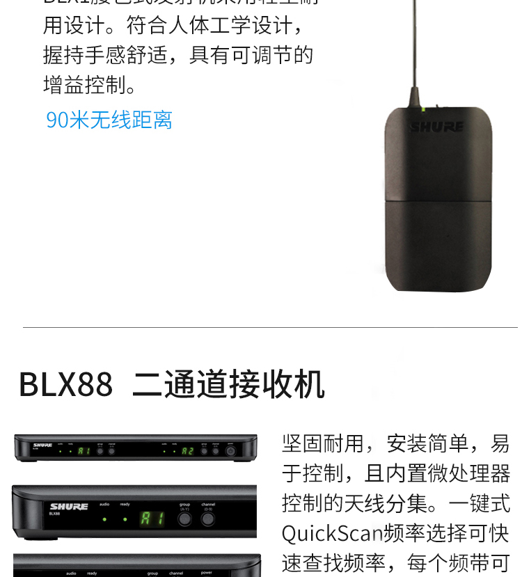 SHURE 舒爾BLX188/PGA31BLX188/CVL無(wú)線頭戴領(lǐng)夾話筒會(huì)議演講學(xué)校教學(xué) BLX188/PGA31 雙頭戴